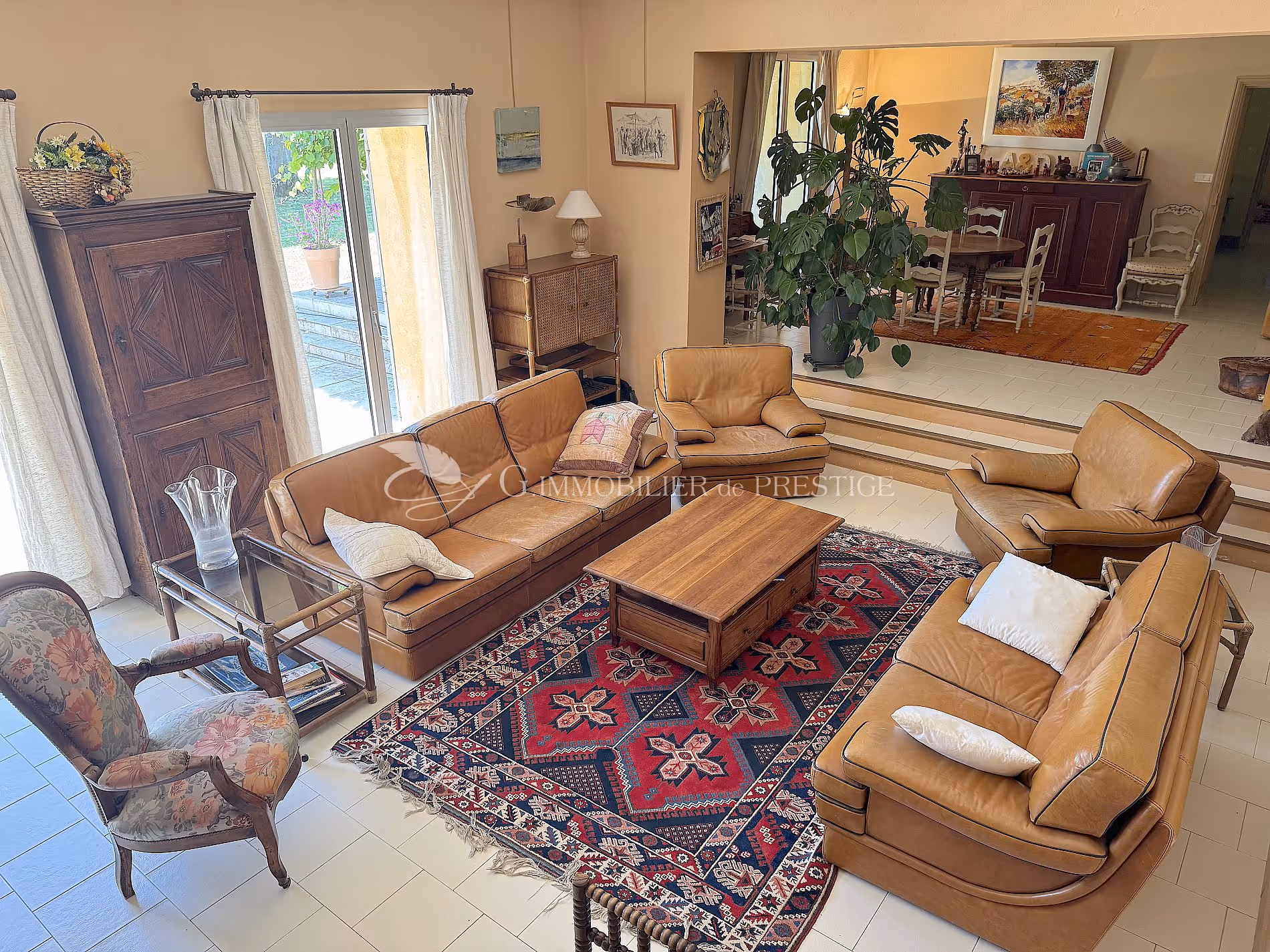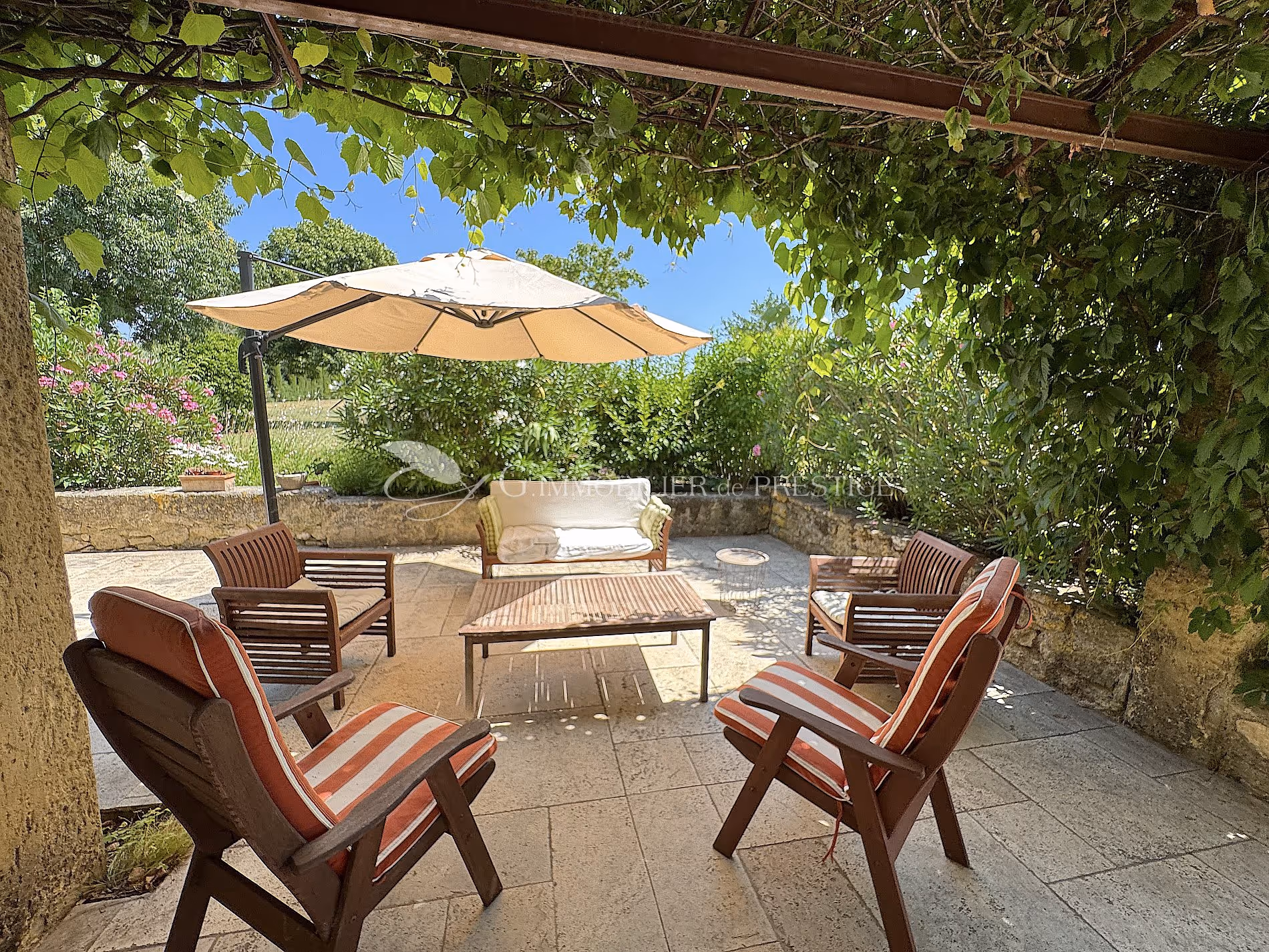 Nichée dans un cocon de verdure, la propriété s'alanguit sous le soleil d'été à l'ombre de sa pergola recouverte d'une treille luxuriante et de son immense micoucoulier. De la terrasse entourée de plantes méditéranéennes, de lauriers-roses et de massifs fleuris, le regard est happé par le champ d'oliviers ( pas moins d'une cinquantaine pour apporter les olives au moulin).