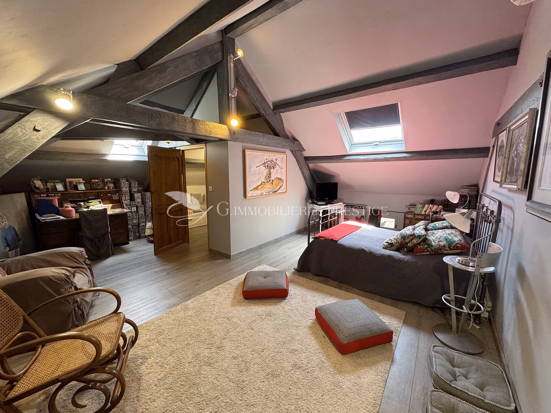 Au second étage un espace bureau puis quelques marches vers un espace sous les toits de 65 m2 environ avec une superbe charpente en bois tradistionnelle.Cet espace, autonome, parfait pour des adolescents se compose de deux chambres/bureau, une salle d'eau et un vaste salon/dressing.