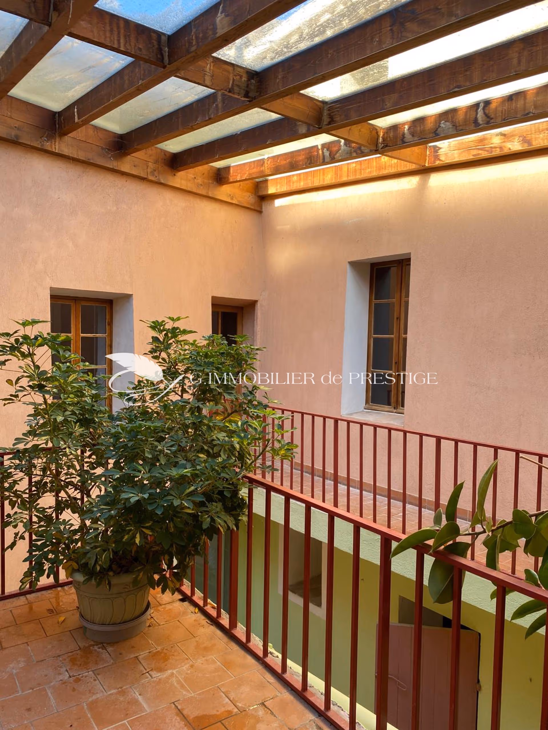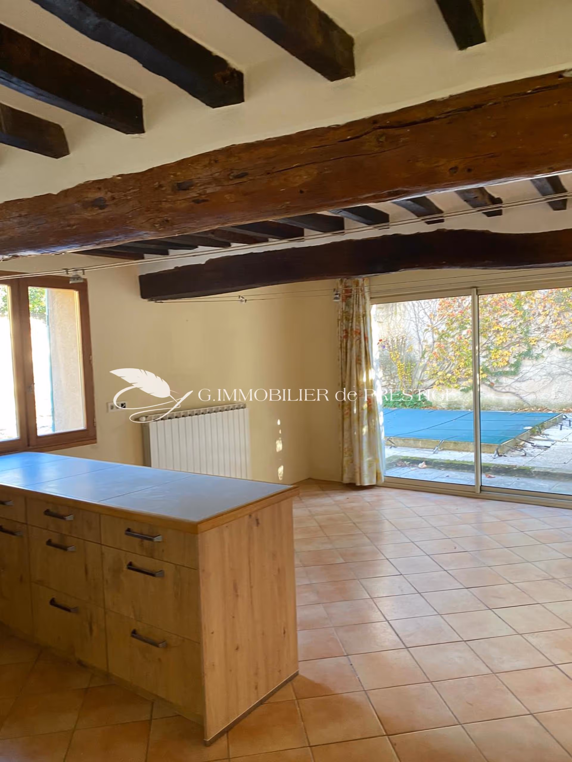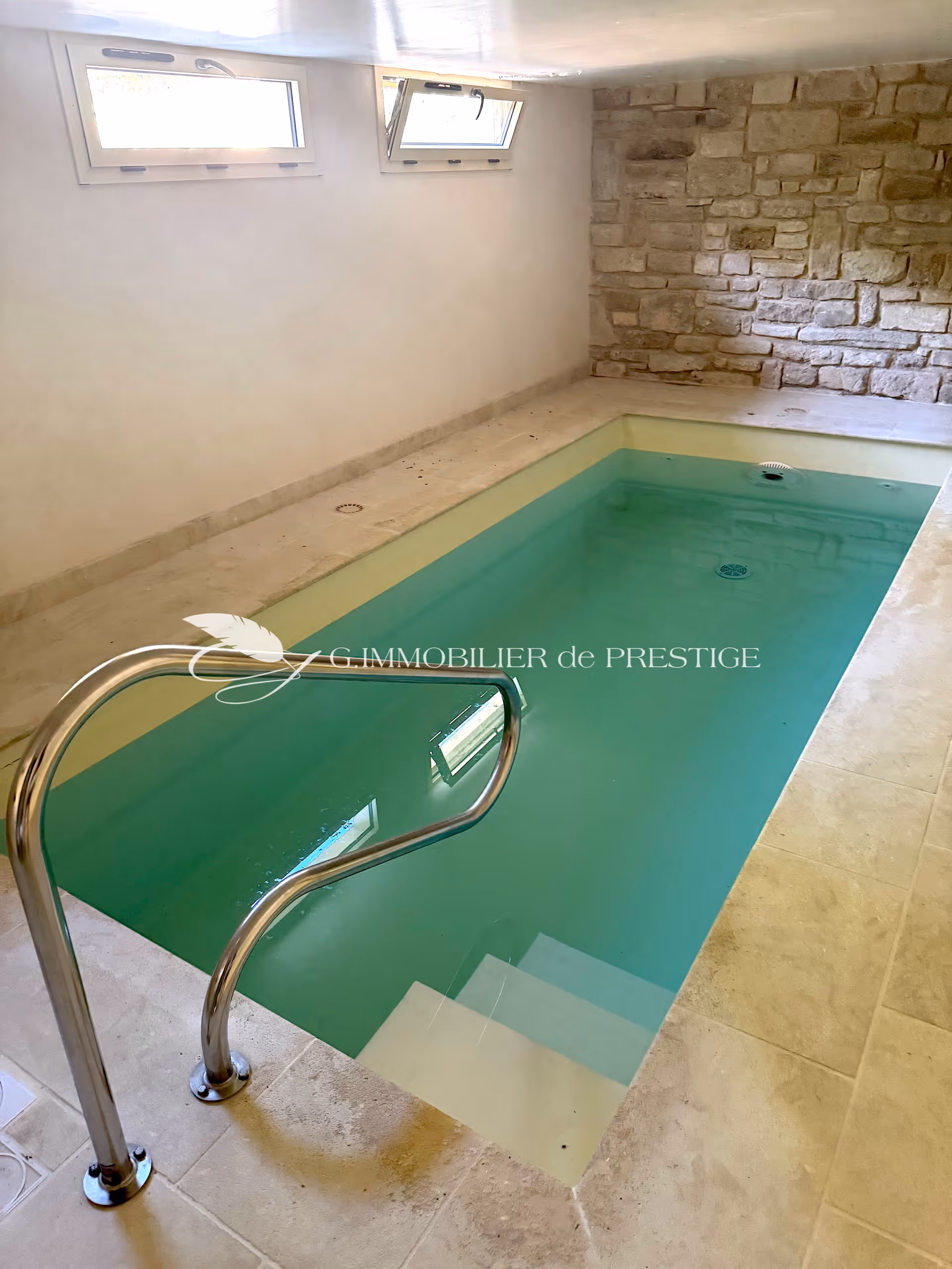 "Portes anciennes, tomettes, pierres et poutres apparentes signent un cachet remarquable pour cette maison lumineuse qui conjugue des atouts exceptionnels en coeur de village avec son jardin avec piscine, sa piscine intérieure, son patio/jardin d'hiver, ses deux entrées, son double garage..."