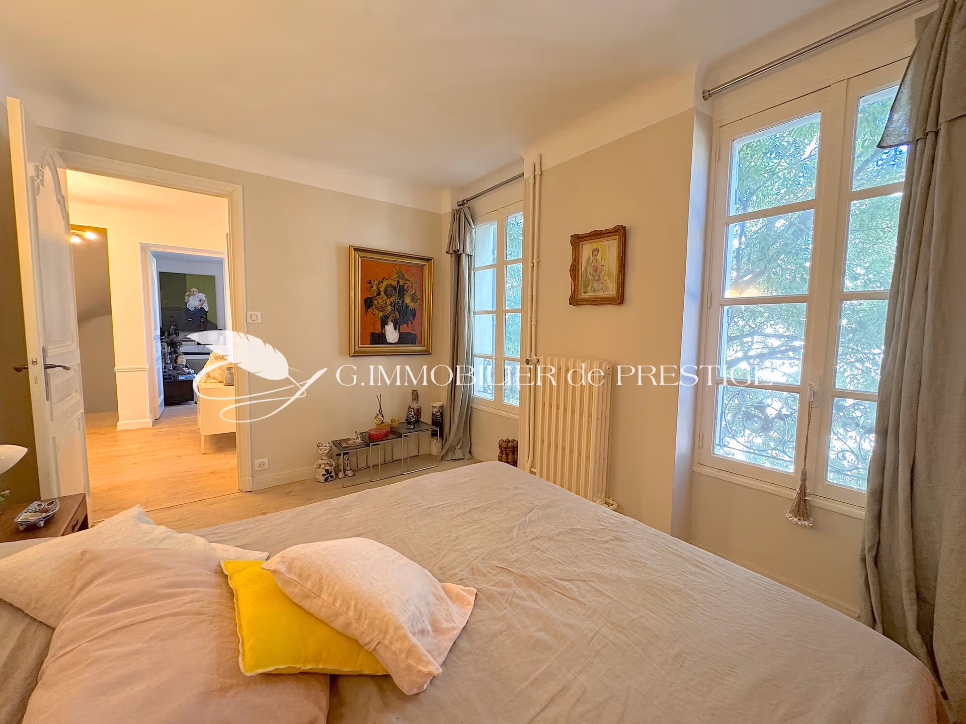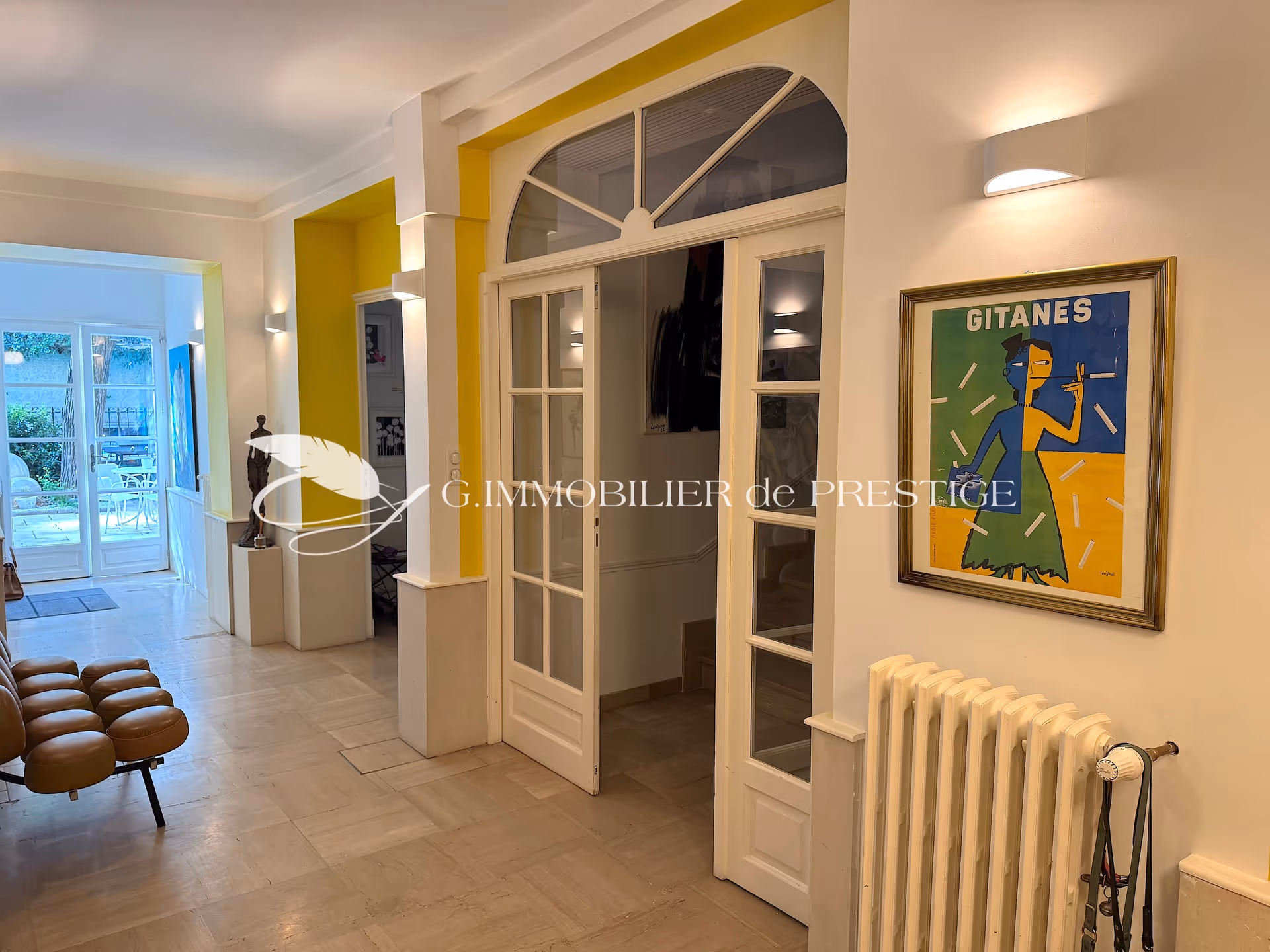 La demeure, répartie sur plusieurs niveaux, s'ouvre sur un jardin paysagé orné d'essences méditerranéennes où les jasmins et les arbres majestueux offrent ombre et fraîcheur. Plusieurs terrasses et espaces intimistes invitent à profiter de ce havre de calme en plein centre ville.