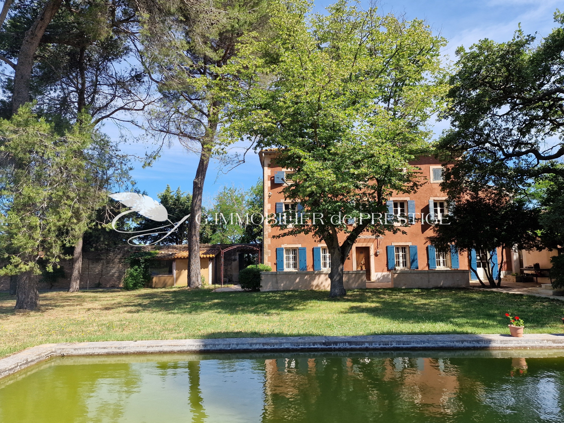 Édifiée au cœur d’un parc paysager de 1,6 hectare, la bastide s’inscrit dans un environnement bucolique d’une grande quiétude. Plus de cent oliviers, des arbres fruitiers, un majestueux chêne centenaire et un bassin d’ornement autrefois peuplé de carpes Koï composent un décor typiquement provençal, à la fois élégant et vivant.