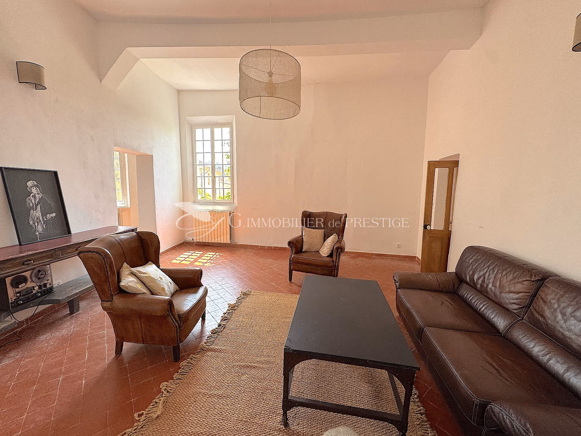 On pénètre dans cette demeure au cachet unique par une belle porte ancienne en bois vitrée avec un encadrement en pierres directement dans une belle pièce de 24 m2.
