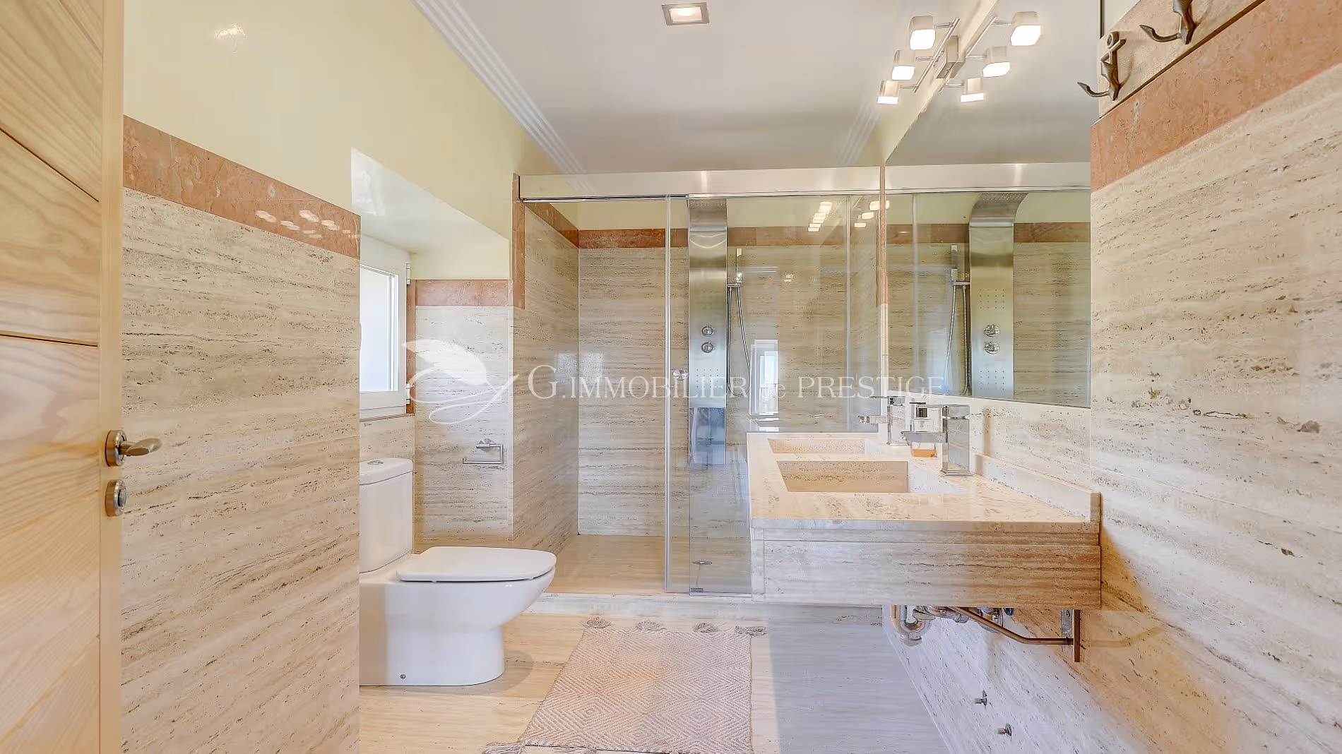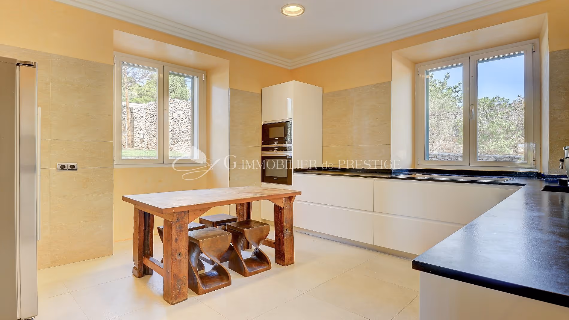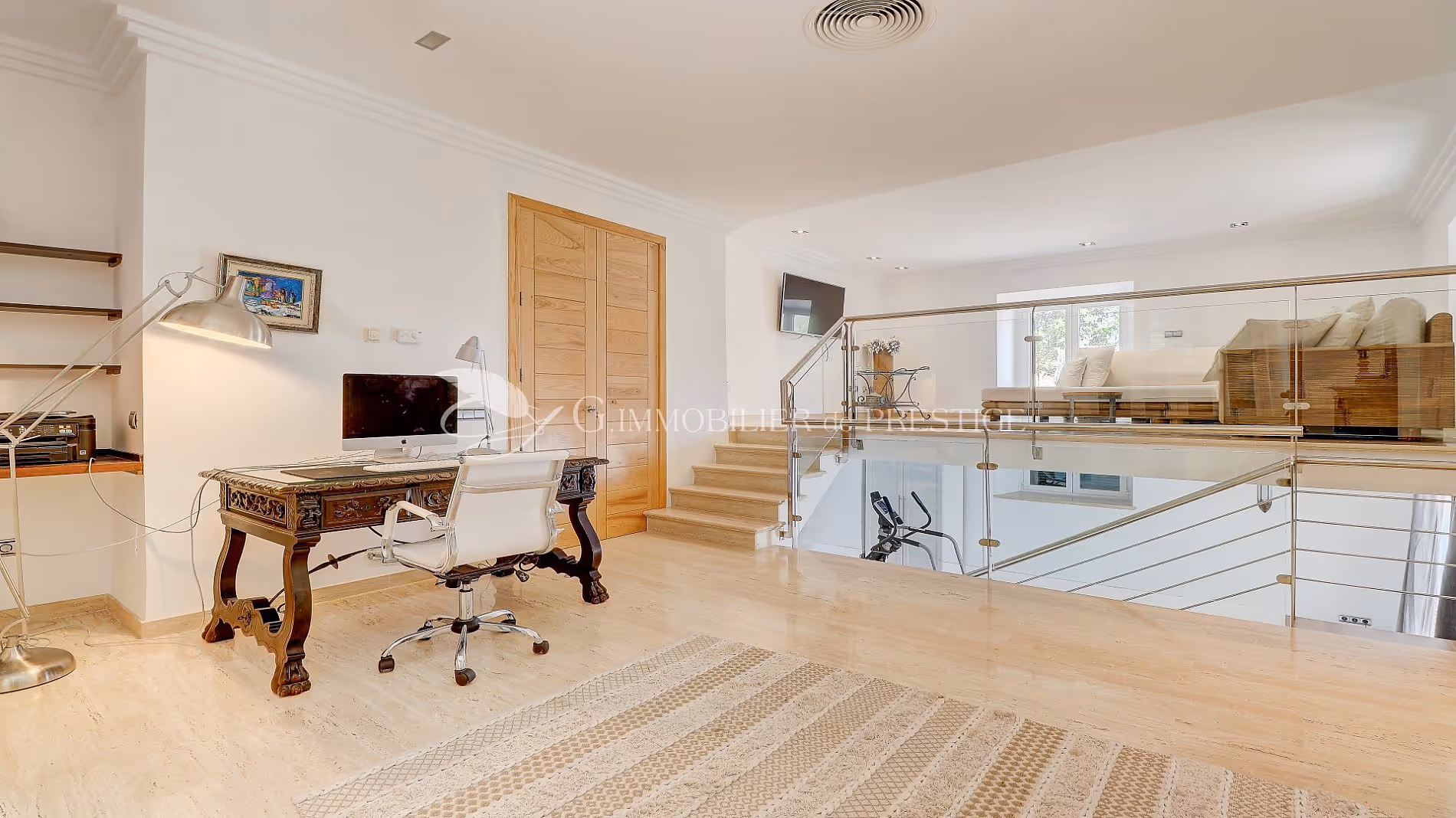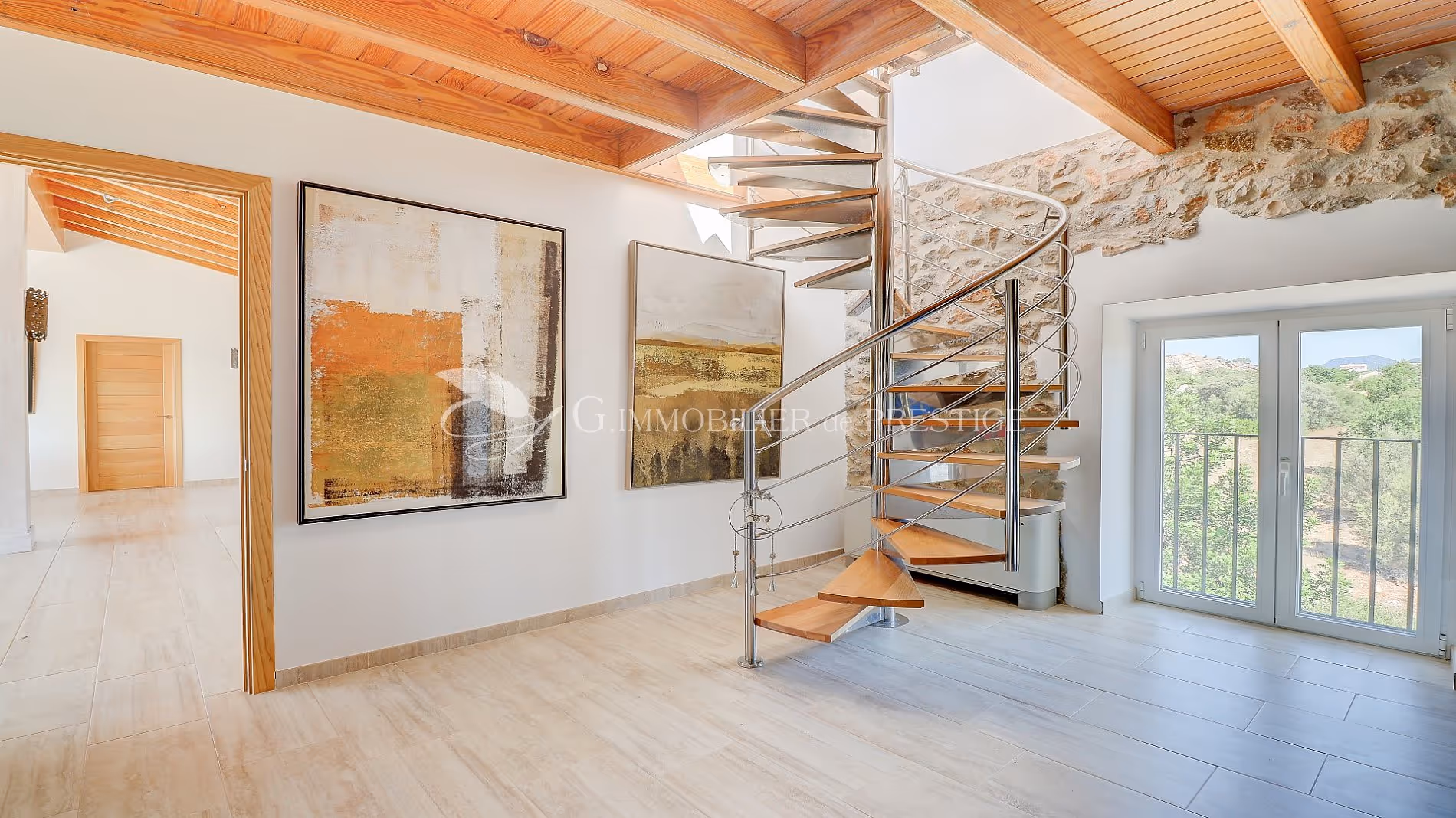 La propriété se compose d'une maison principale et d'une annexe avec un studio. La maison principale a une surface construite d'un peu plus de 700m² sur trois étages avec des terrasses ouvertes et des vues panoramiques sur la baie de Palma.