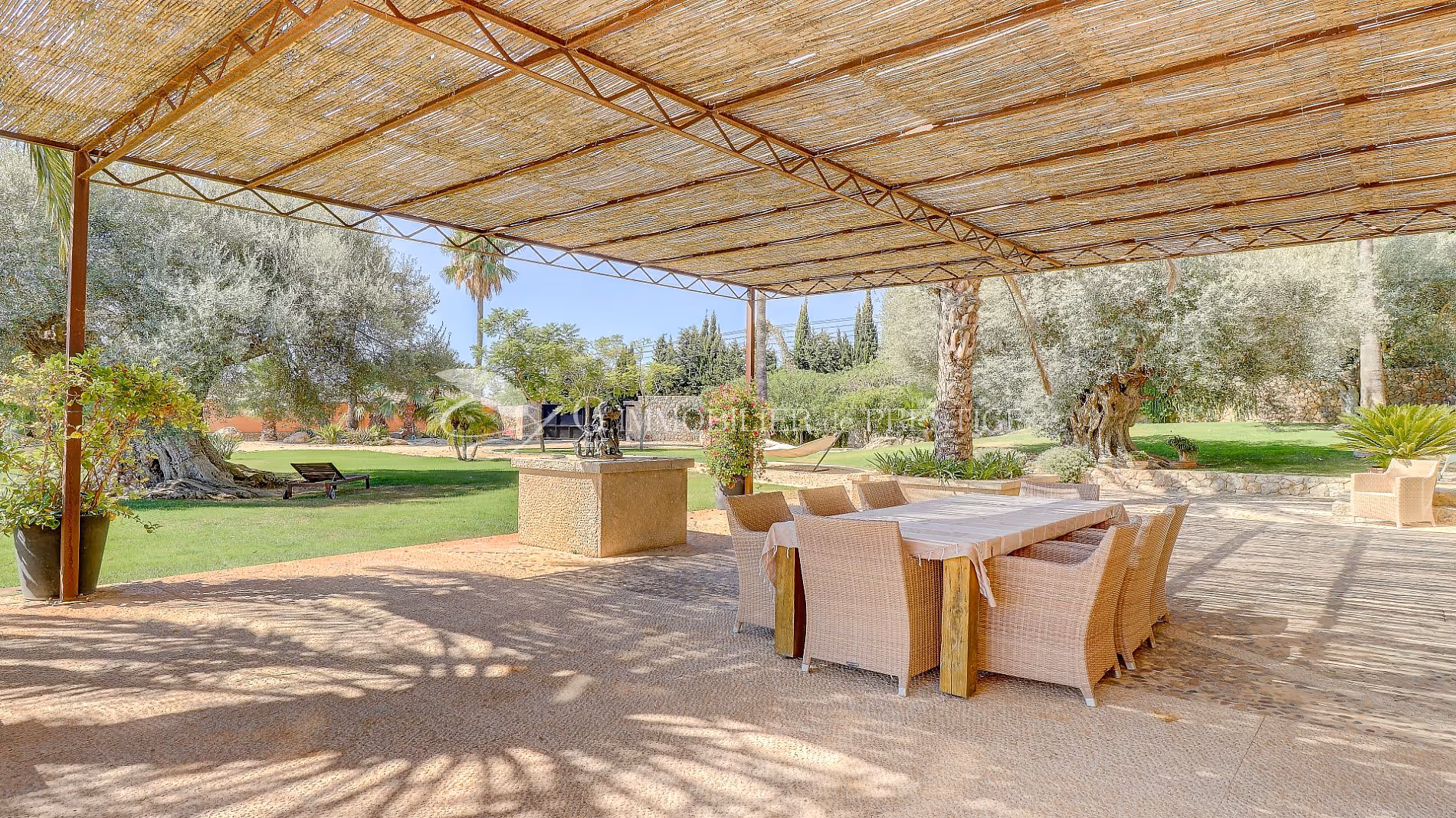 à l'extérieur de la propriété, il y a un jardin avec de grandes terrasses, un jacuzzi et une piscine, ainsi qu'une grande variété de plantes, d'arbustes et d'arbres fruitiers.