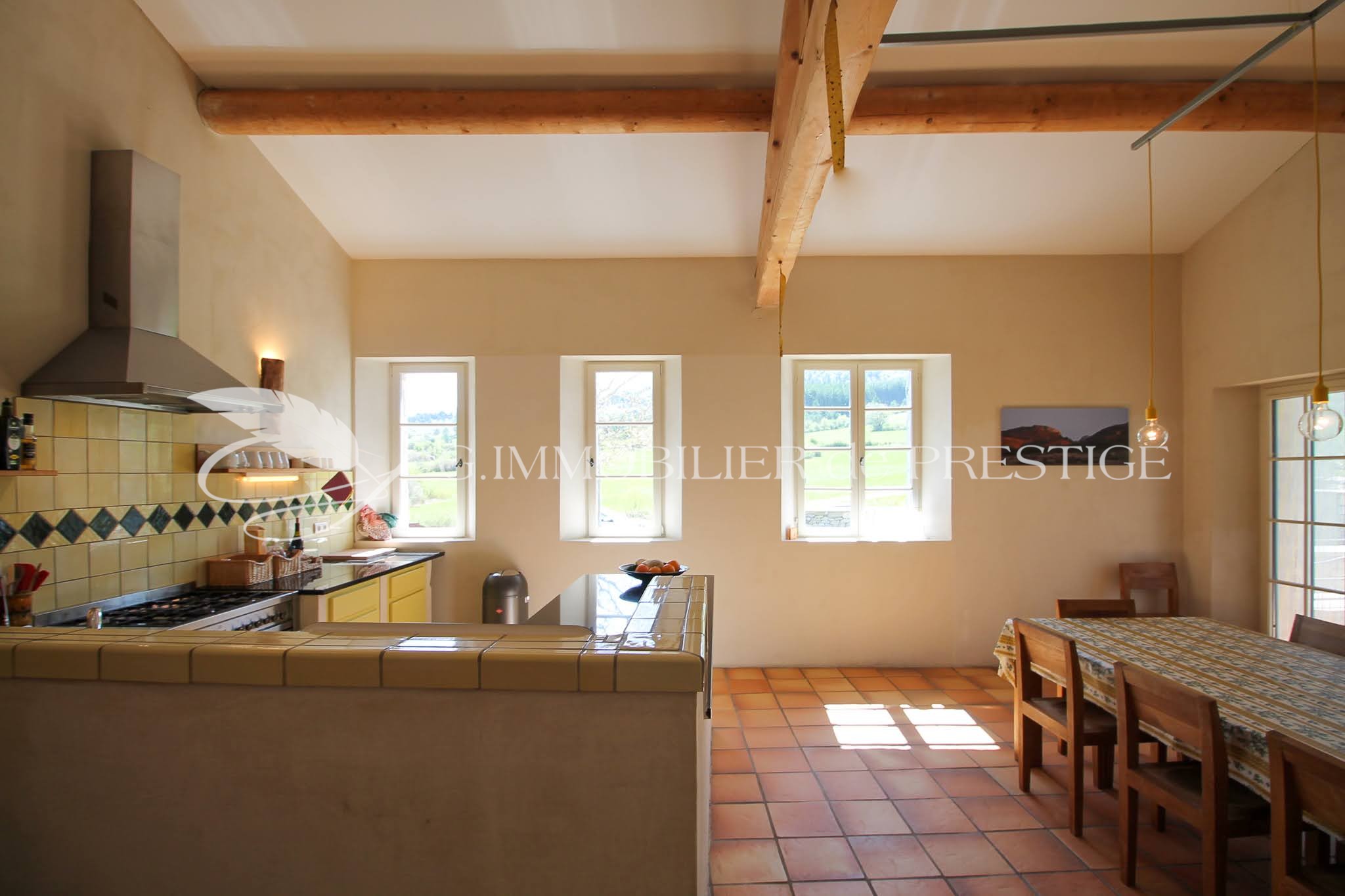 Implantée dans un environnement d’une rare quiétude, à environ 700 mètres d’altitude, cette propriété de caractère s’étend sur un domaine de 1,2 hectare, offrant un panorama ouvert et préservé sur les collines environnantes. À l’abri de toute nuisance, elle séduit immédiatement par son authenticité et la qualité irréprochable de sa rénovation, réalisée avec des matériaux nobles dans le respect de l’âme provençale.