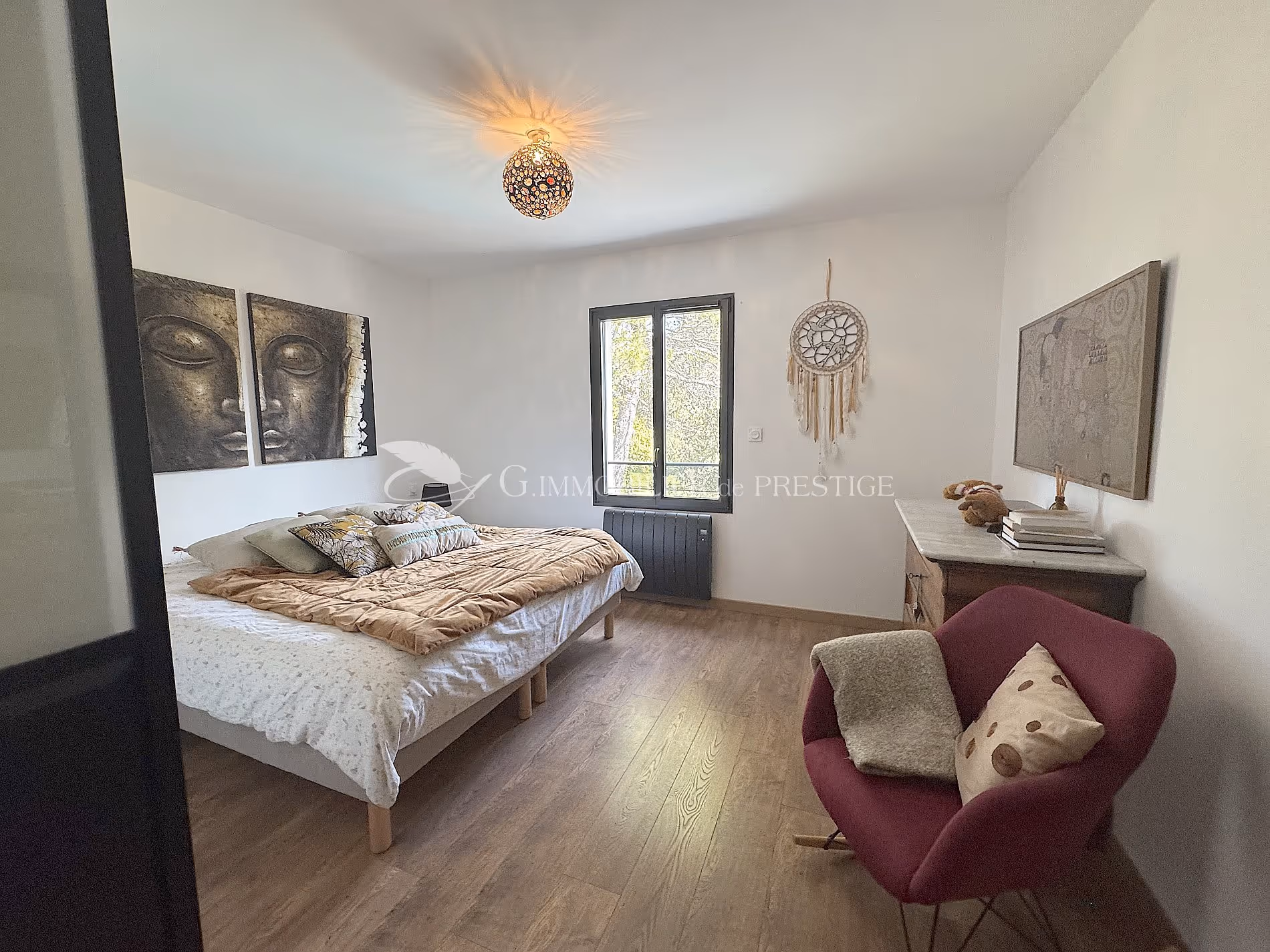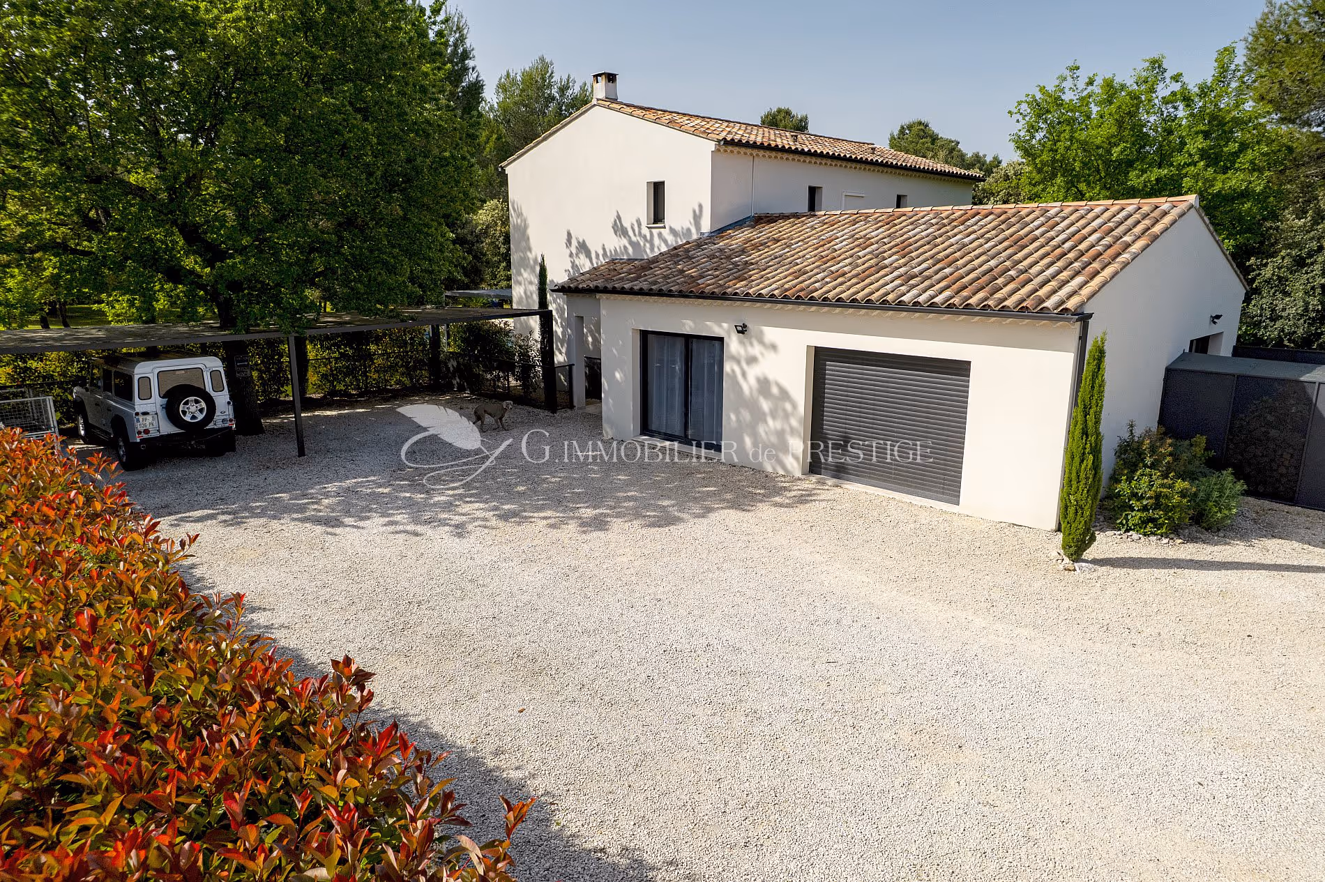 Un portail automatique s'ouvre et une villa ouvre ses portes avec générosité et élégance.