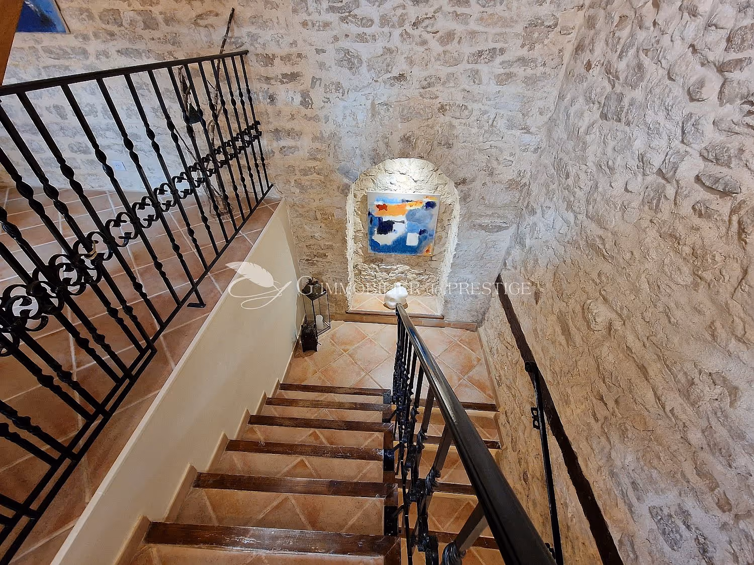Au premier étage : trois belles chambres avec armoires en chêne chevillé, salle d’eau moderne et élégante, à faïences italiennes, installations contemporaines (éclairages, armoires, luminaires), toilettes indépendantes.