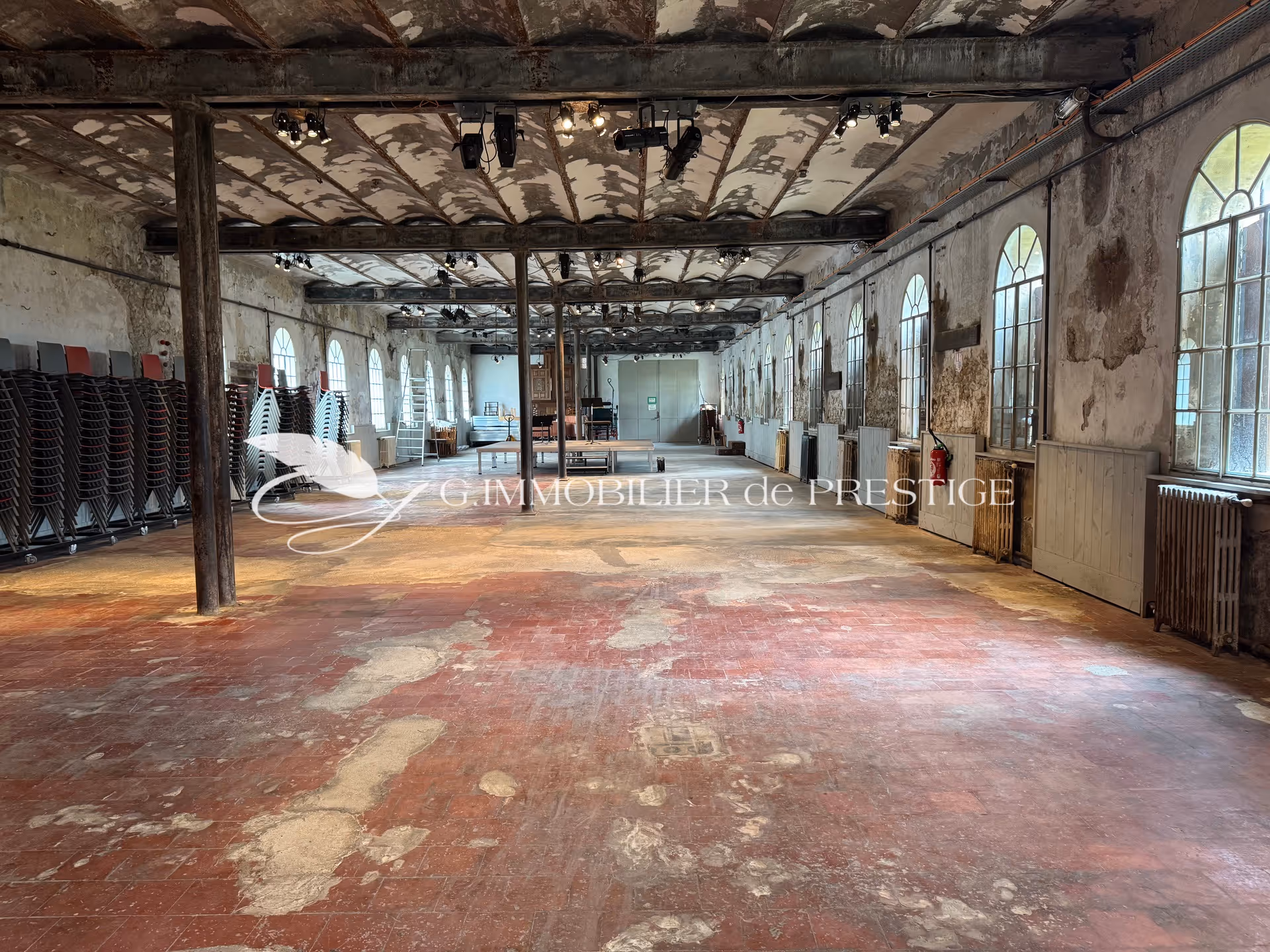 Les volumes d'origine, généreux et rythmés par de grandes ouvertures en arc plein cintre offrent une assise remarquable pour un projet de réhabilitation haut de gamme.