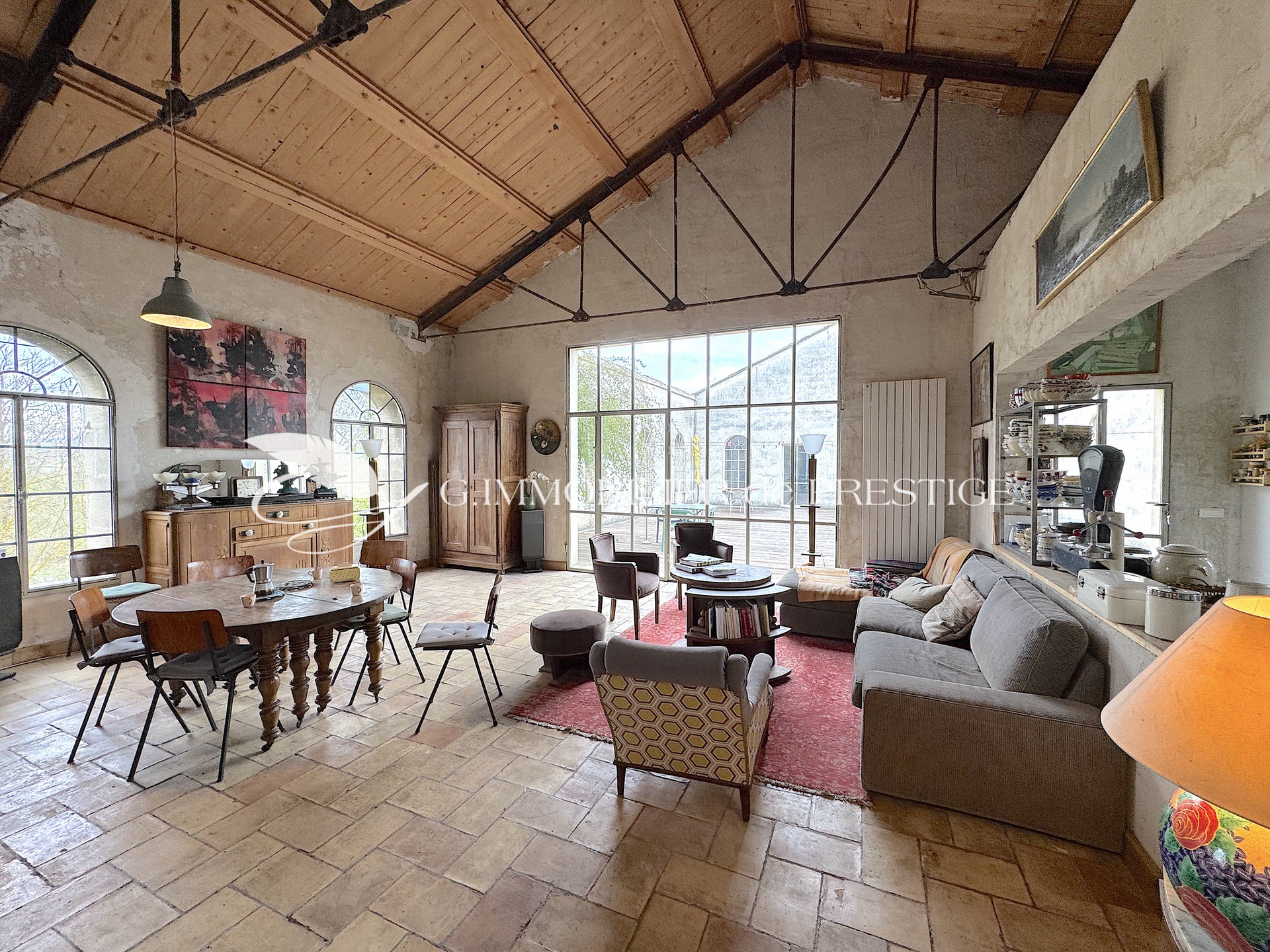 Ce magnifique bâtiment industriel en pierre de 1166 m2 est une ancienne usine du XIXe siècle initialement dédiée à la production de poudre de garance puis reconvertie en filature de ramie au début du XXe siècle au coeur d'un parc de 7 HA dont une partie est bordée par la Sorgue.