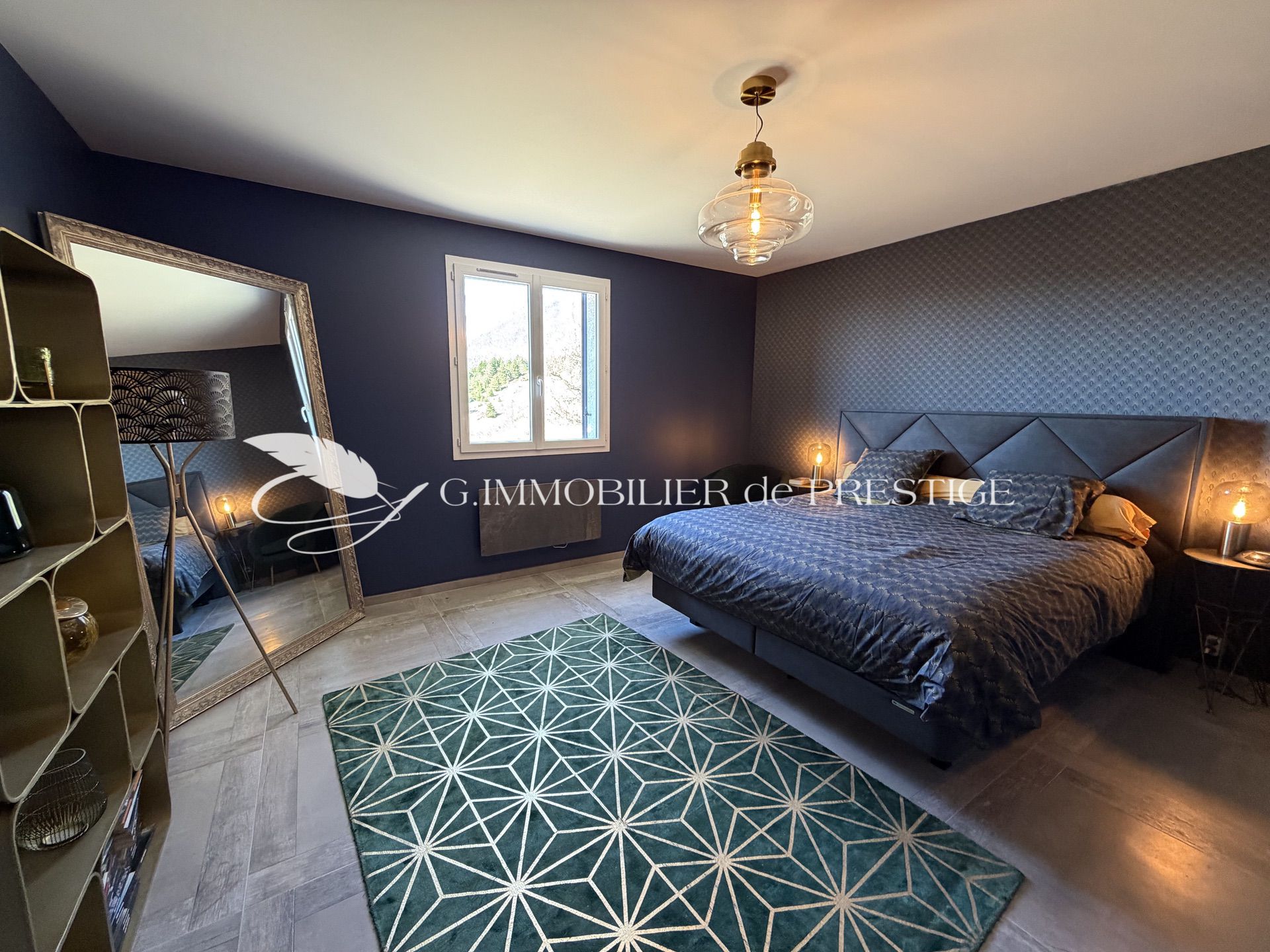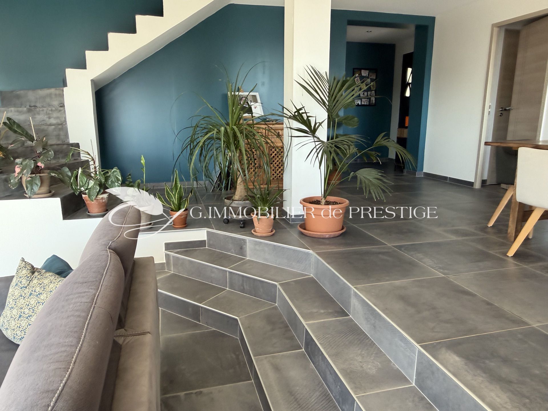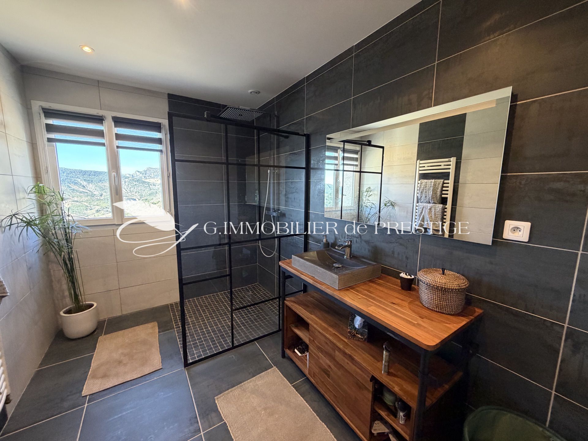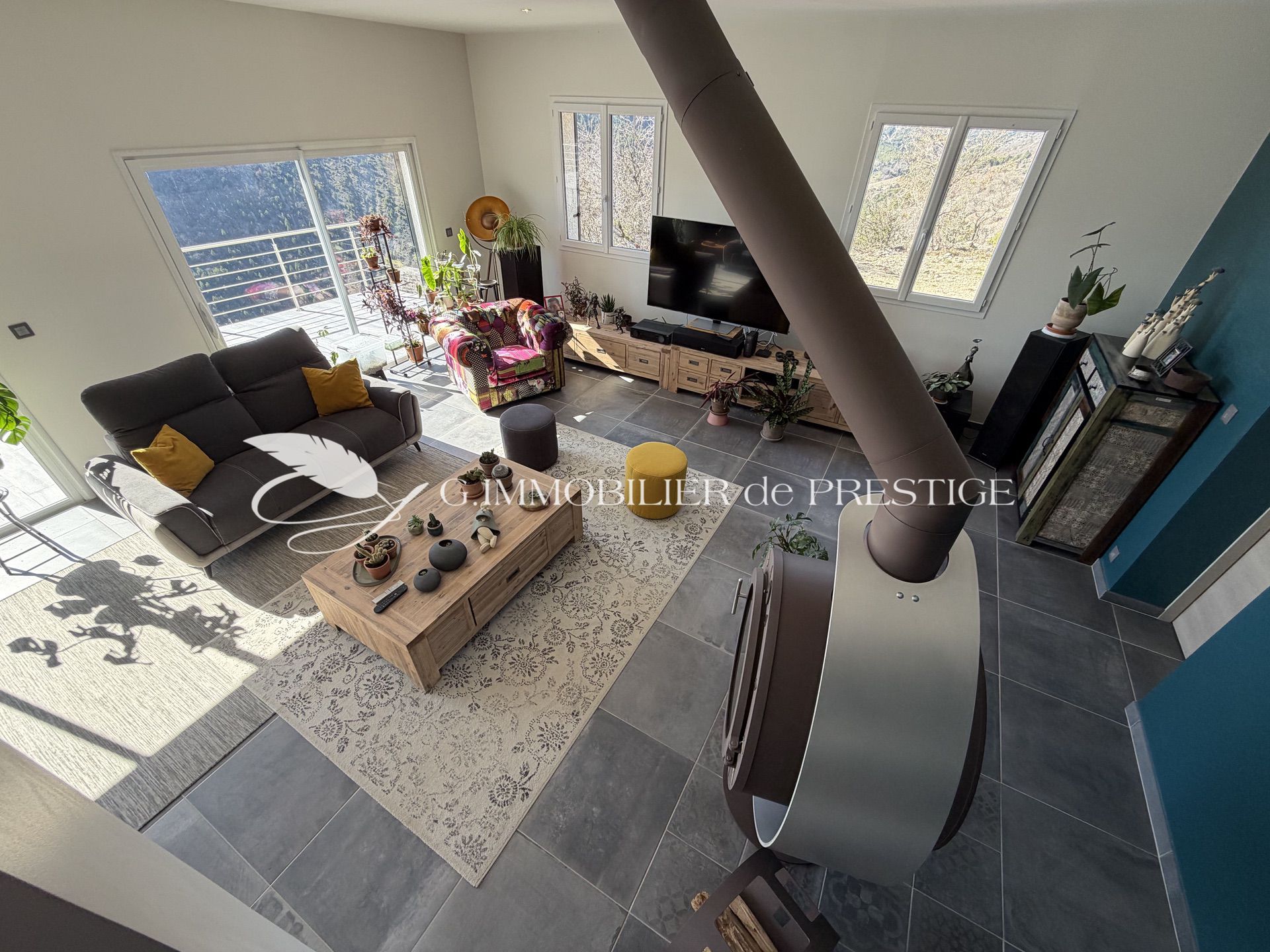 Dès l’entrée une vaste pièce de vie de 75 m2 environ sur deux niveaux baignée de lumière s'ouvre sur deux terrasses panoramiques qui offrent une vue spectaculaire sur un paysage naturel riche en reliefs.