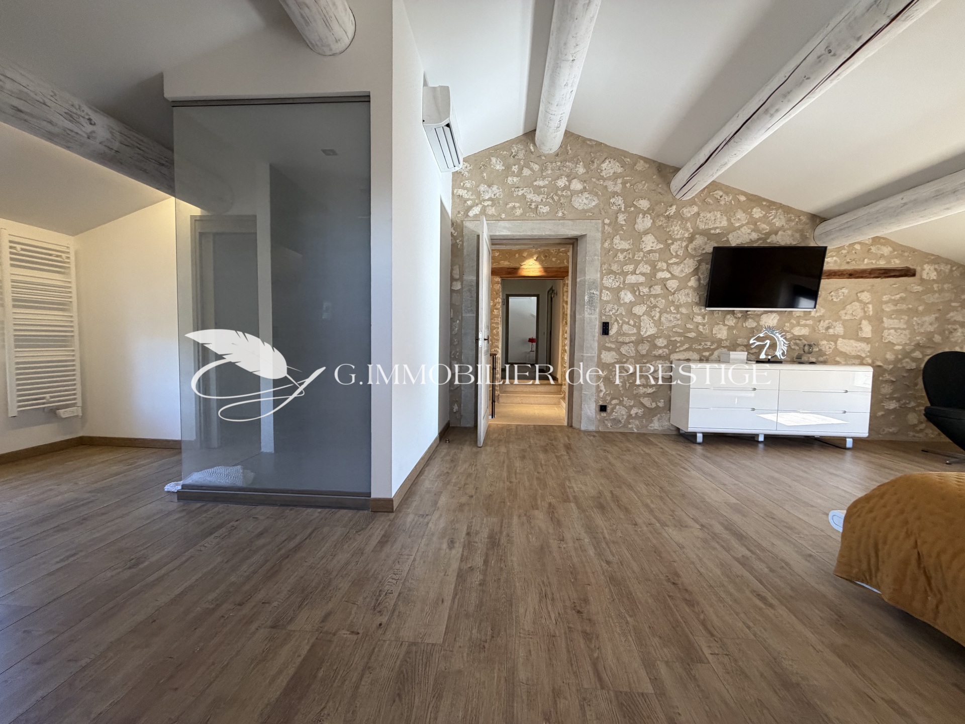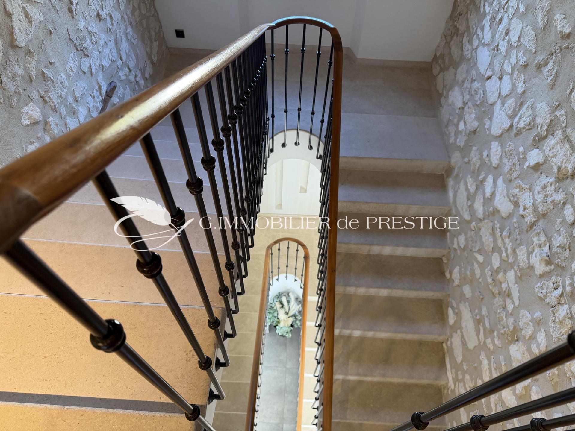 ce très beau mas élégant en pierres de 468 m2 profite d’un terrain de 7400 m2 avec une oliveraie.