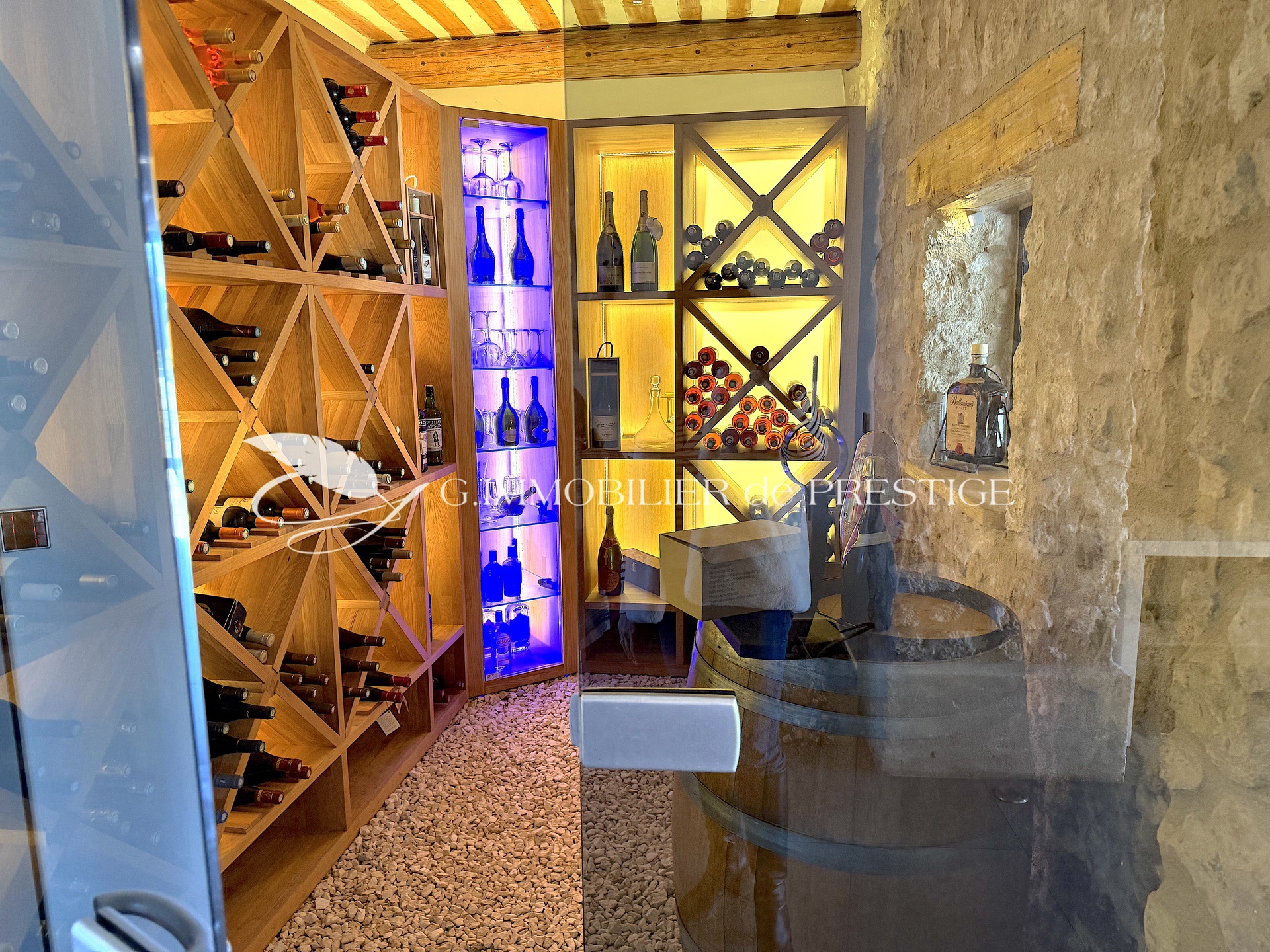 Cette cave est une véritable « pièce signature » pour amateurs de vin par son aménagement en bois sur mesure, ses rangements, son éclairage d’ambiance et sa belle mise en scène pour venir choisir ou déguster sur place un bon cru.