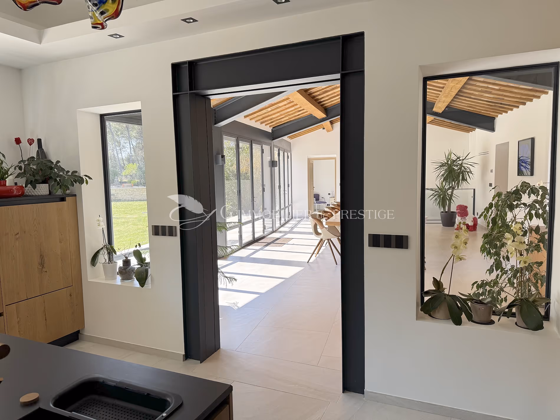 Des prestations de qualité: une maison domotisée avec chauffage au sol, climatisation gainable réversible, menuiseries en aluminium Schüco, portes en bois exotique, volets roulants électriques avec des volets bois conservés pour l'esthétique, eau de ville filtrée, eau du canal pour l'arrosage extérieur, puits. Plomberie et electricité neuves.