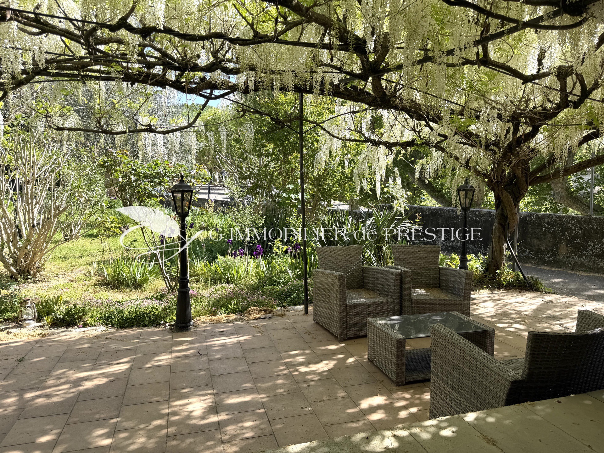 Au cœur d’un jardin de verdure suspendu de 540 m2 en position dominante, dans le beau village de Malaucène, au fond d’une belle allée ombragée se niche cette maison de maître de 310 m2 environ.