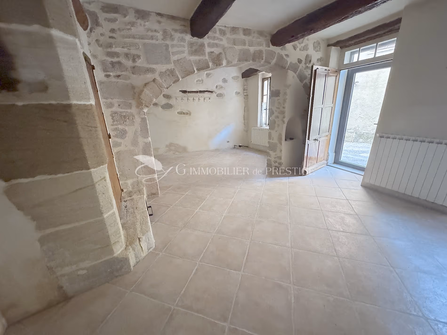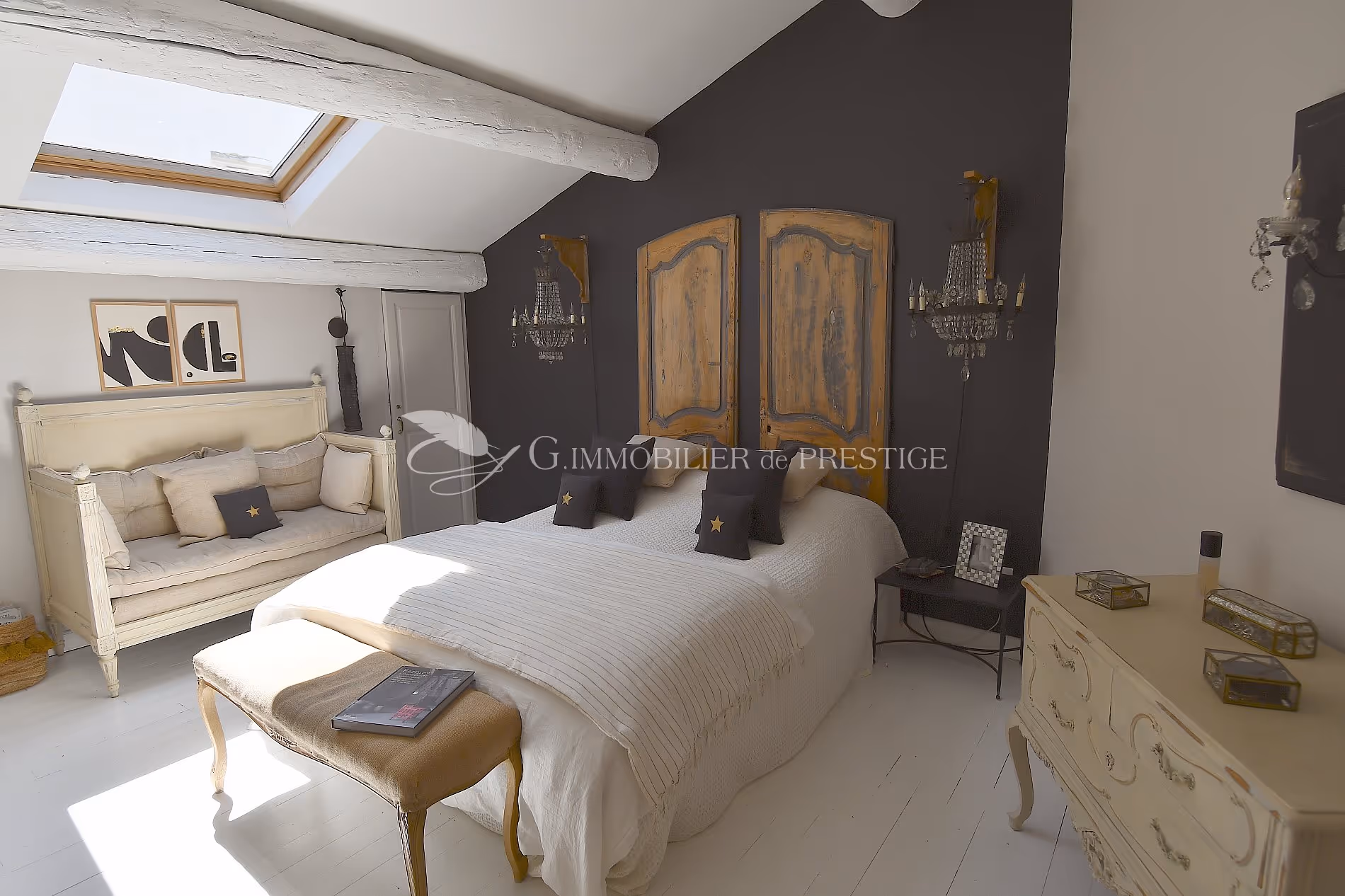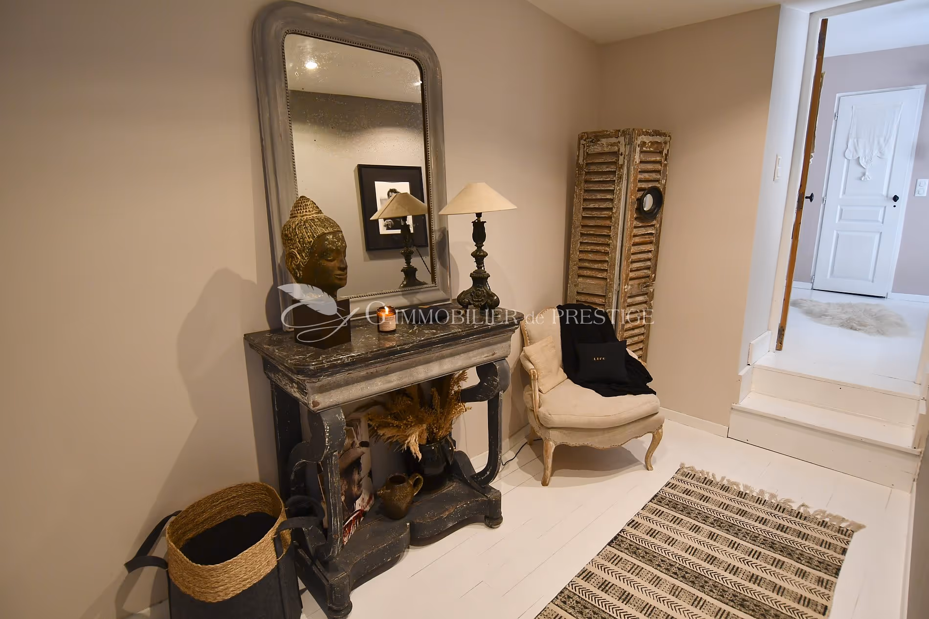 D'abord, il y a une jolie ruelle, une façade chic aux accents du sud, un portail et une belle porte ancienne qui nous fait pénétrer dans un vaste hall de 25 m2, préambule à découvrir avant de monter au premier niveau, coeur de vie de la demeure.