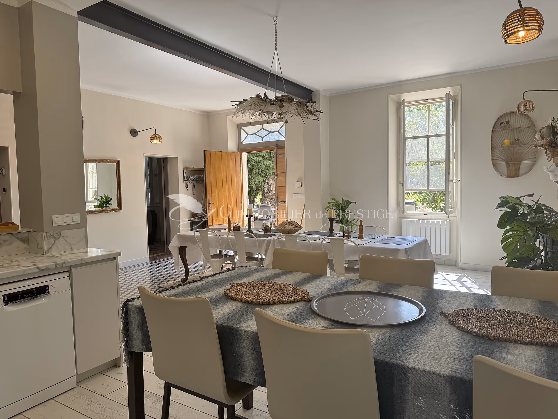 la porte ancienne ouvre sur un hall d’entrée et une belle pièce de 52 m2 composée de l'entrée, un salon/salle à manger avec une cuisine ouverte.