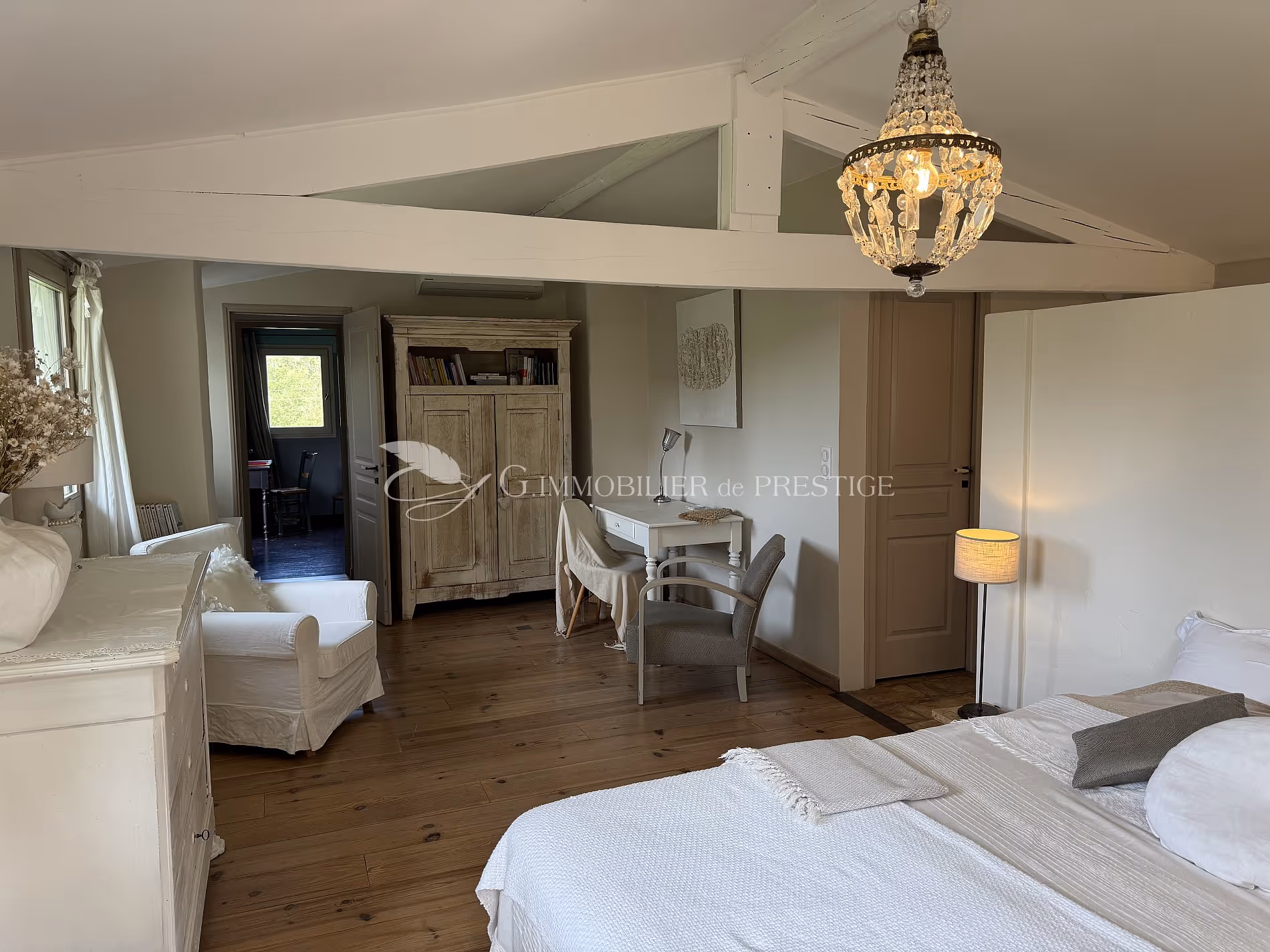 upstairs a large suite with its elegant adjoining bathroom and a second bedroom with shower room.