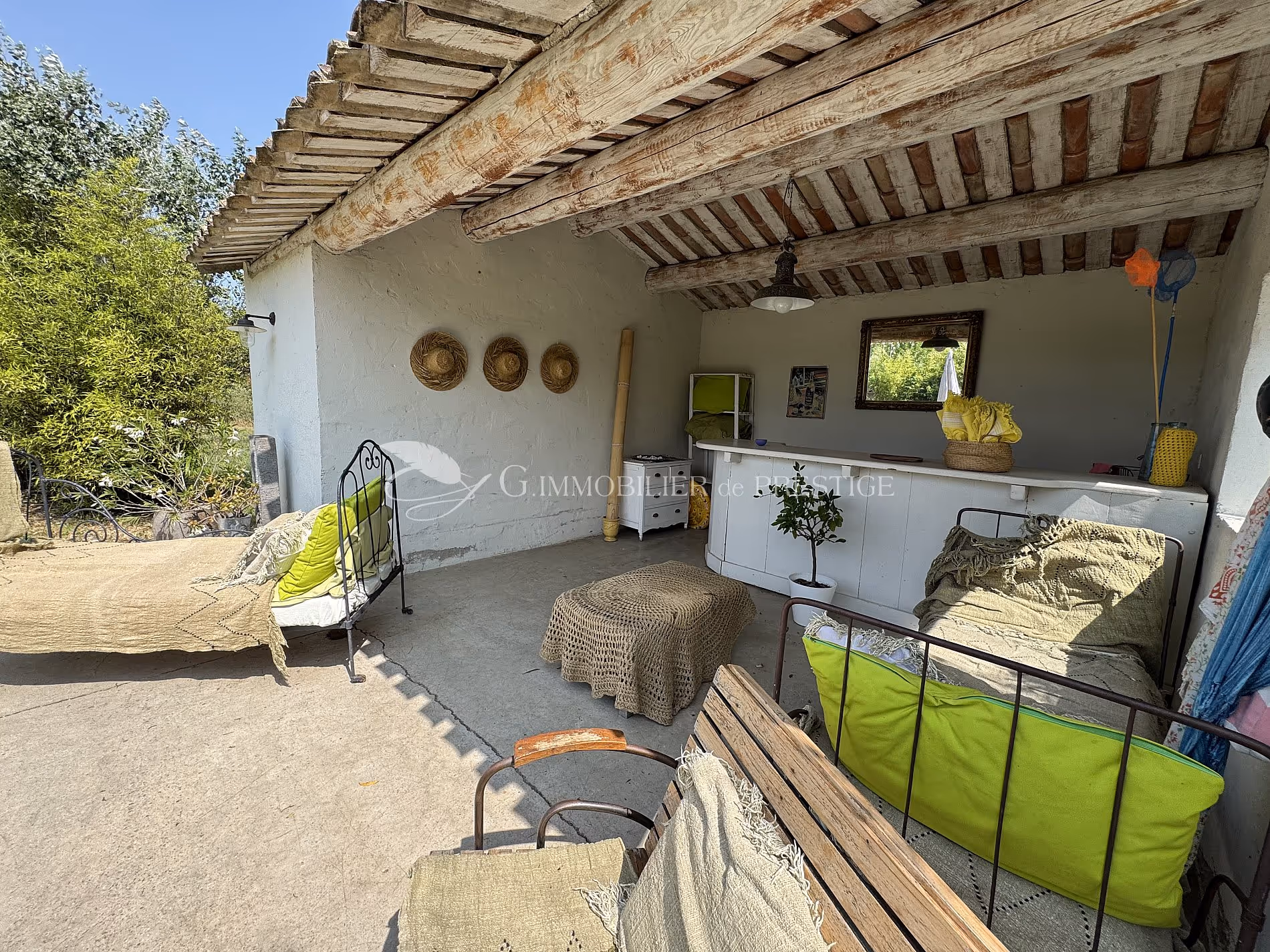 Perched on a rocky outcrop at the edge of the picturesque village of Théziers in Gard, this authentic Provençal property offers a main house and a fully restored shepherd’s house, set within a 5,000 m² green oasis featuring 40 olive trees, fruit trees, and unspoiled natural surroundings as far as the eye can see.