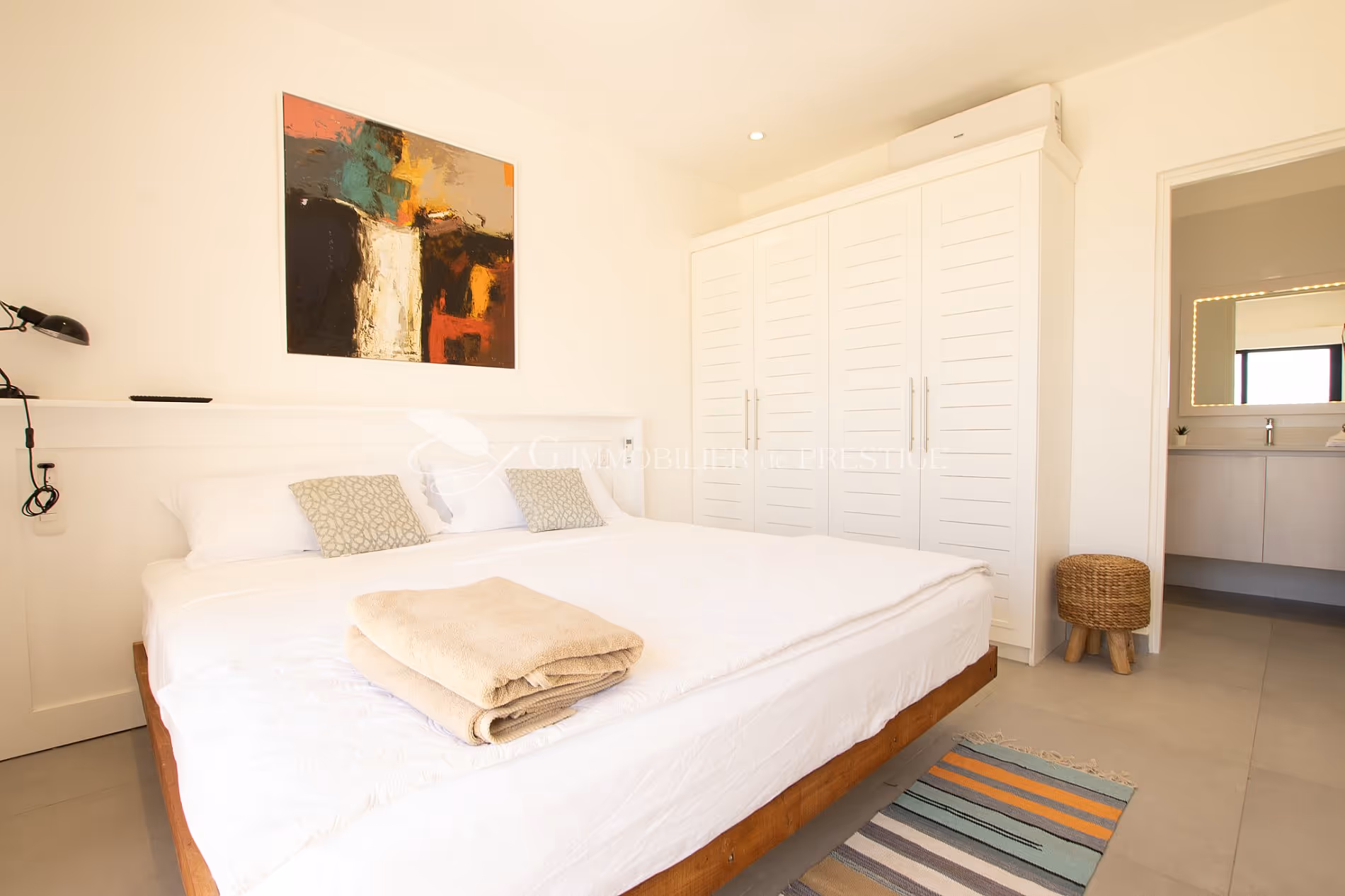 La premiere maison d'une superficie intérieure de 160m2 possède 3 chambres, 2 ,5 salle de bain, une lavanderie. Meublée avec goût, totalement rénovée, une terrasse en teck de plus de 100m2, face à la mer et sa piscine en pierre