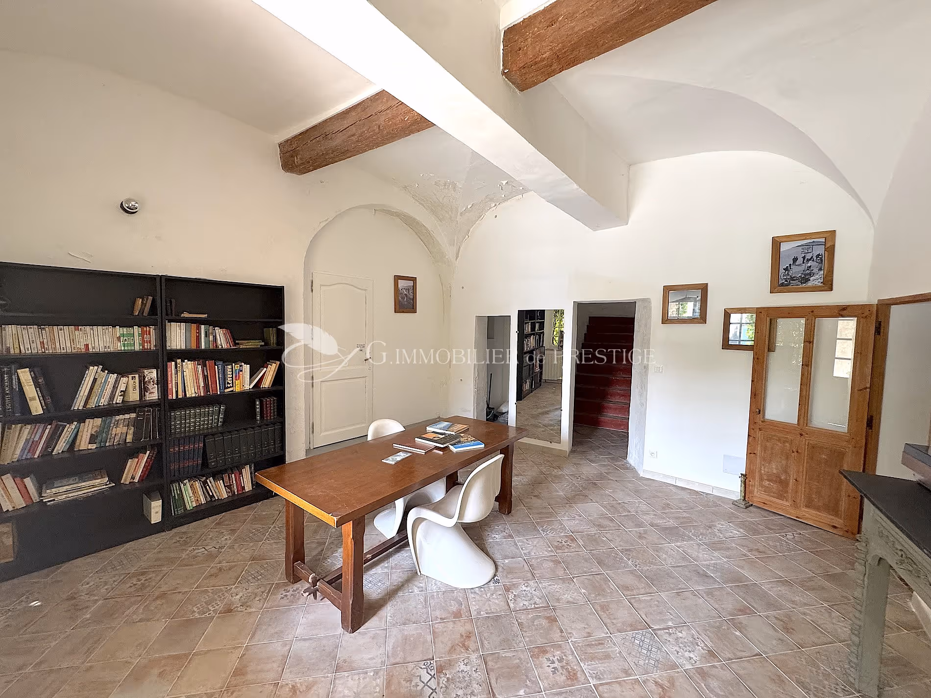 Spread over three and a half levels, the rooms combine generous proportions with a ceiling height of 3.6 m, creating a bright and airy atmosphere. At the top level, a terrace above the rooftops offers breathtaking views of the surrounding hills and the village church, straight out of a postcard. The property also features beautiful vaulted cellars, while a wide staircase in raw concrete and stone connects all floors, leading from a charming glazed wooden front door with stone surround into a 24 m² reception room.