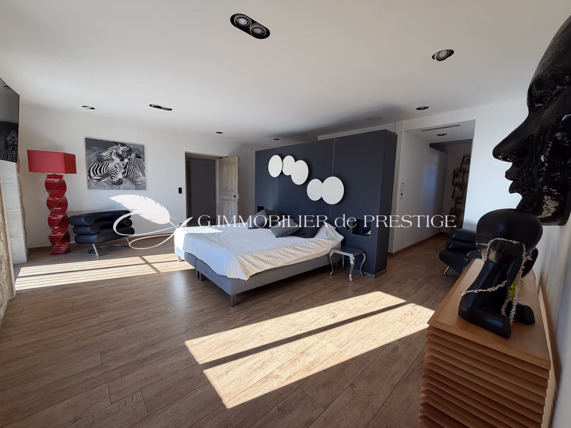On the first floor, there is a magnificent 69 sqm master suite with bathroom and dressing room, as well as a second master suite with private lounge and shower room.