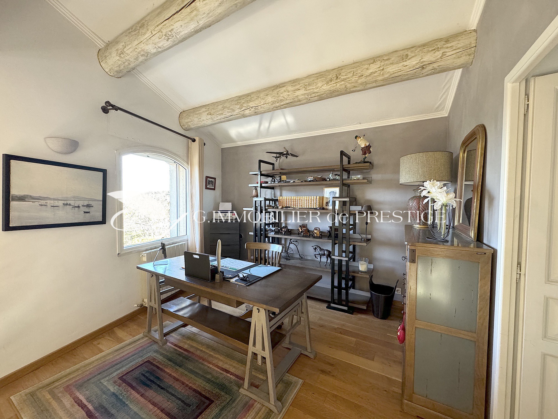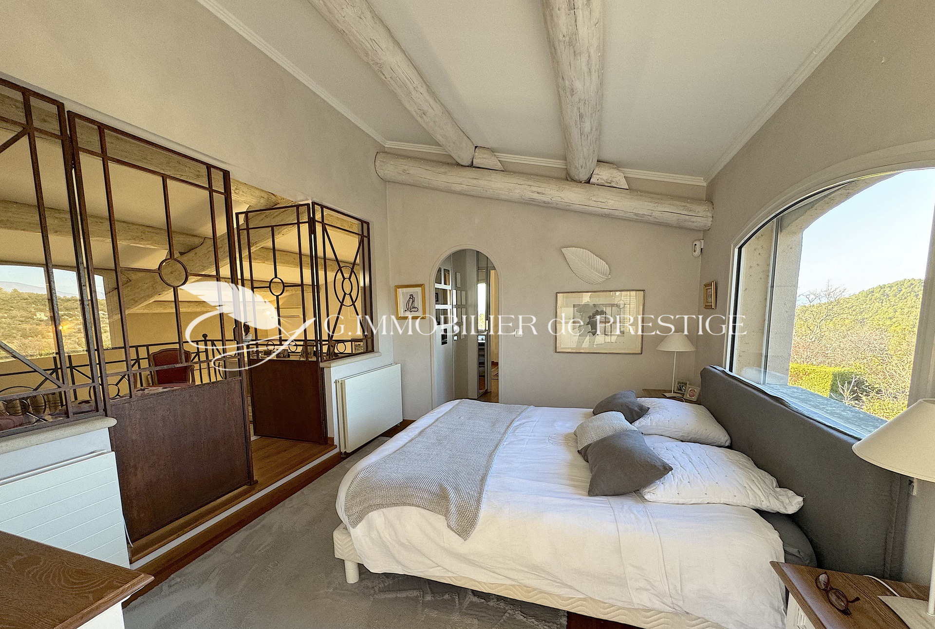 Un escalier donne accès à un étage en partie ouvert vers le séjour. Un joli bureau cosy. Une vaste chambre parentale de 41 m2 avec dressing, salle d'eau et espace salon qui surplombe l'espace de vie. Cette pièce lumineuse profite d'une fenêtre avec la vue du Ventoux au nord et une terrasse privative au sud en vue piscine.
